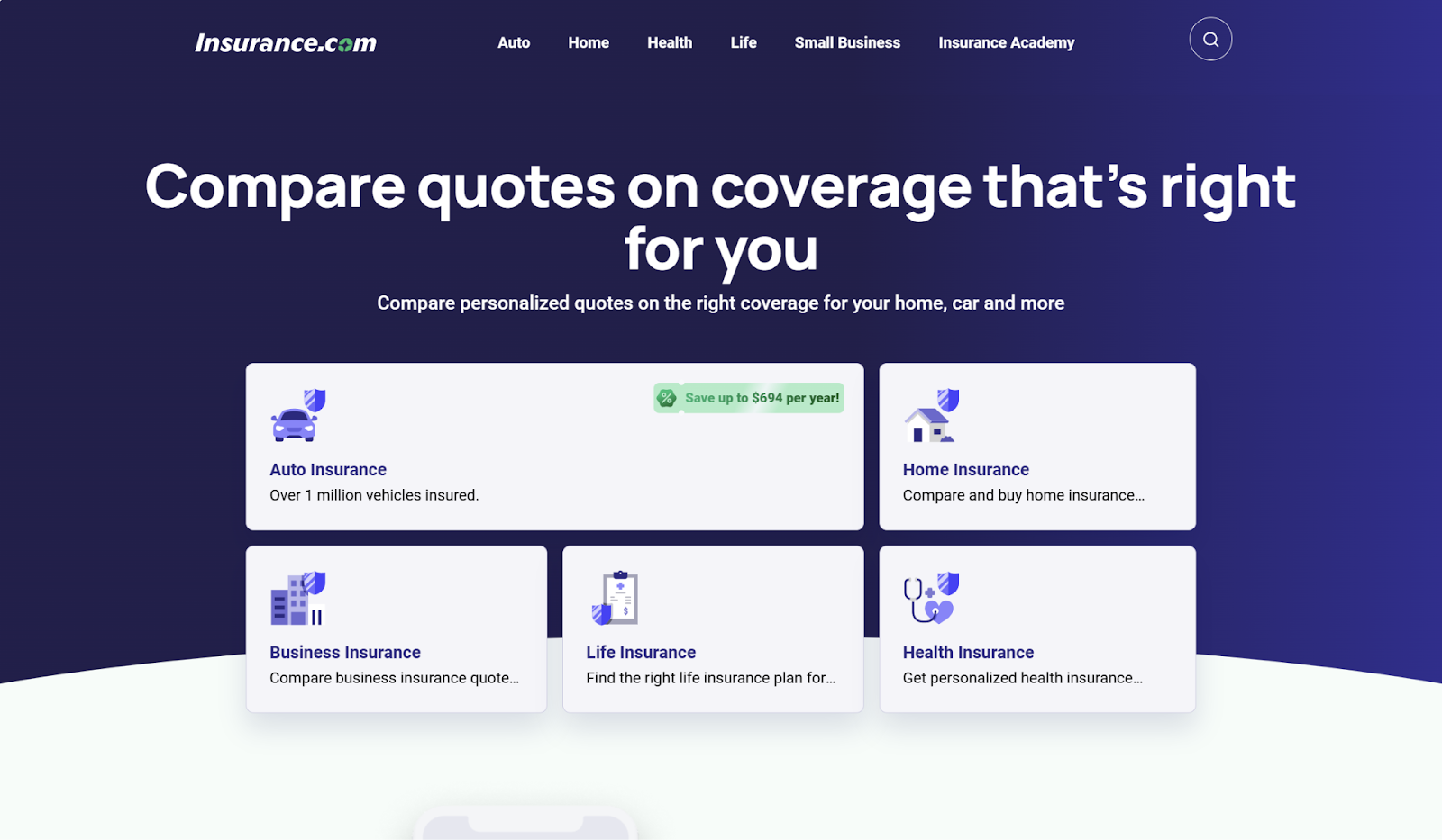Insurance.com is another financial comparison site, but this one specializes exclusively in insurance, renters insurance included.