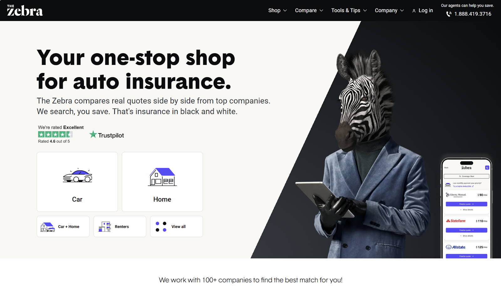 - Insurance agents available: In addition to the educational information presented on their site, The Zebra also has insurance agents available for you to speak to through The Zebra Insurance Agency.